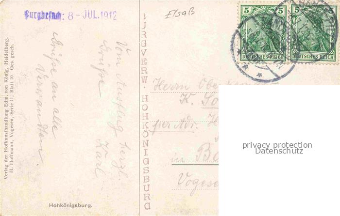 74005519 alte Postkarte Hoffmann Heinrich Kuenstlerkarte Sueddeutschland Alsace Hohkoenigsburg postalisch gelaufen Erhaltung siehe scans [IrynaD87] KatCode: 22240000001600