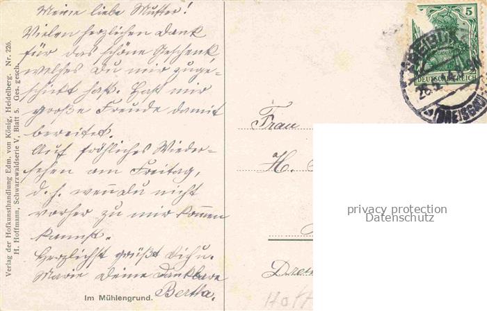 74005526 alte Postkarte Hoffmann Heinrich Kuenstlerkarte Sueddeutschland Alsace Im Muehlengrund postalisch gelaufen Erhaltung siehe scans [IrynaD87] KatCode: 22240000001600