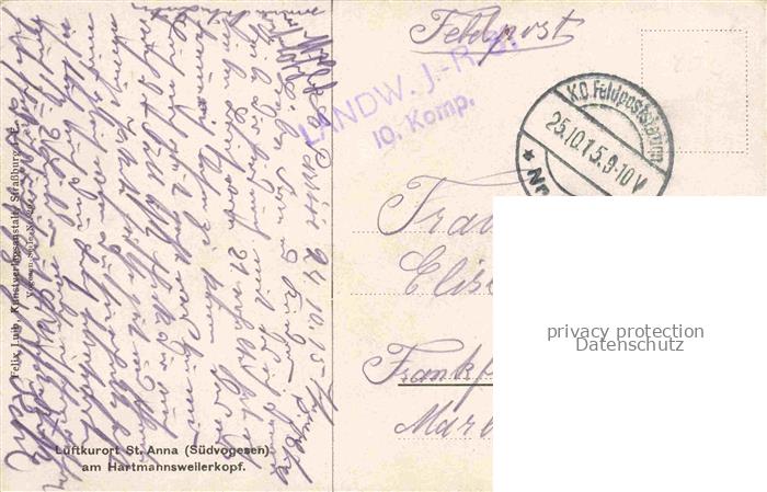 74006518 alte Postkarte Hoffmann Heinrich Kuenstlerkarte Sueddeutschland Alsace Kurort St. Anna am Hartmannsweilerkopf postalisch gelaufen Erhaltung siehe scans [IrynaD87] KatCode: 22240000001600