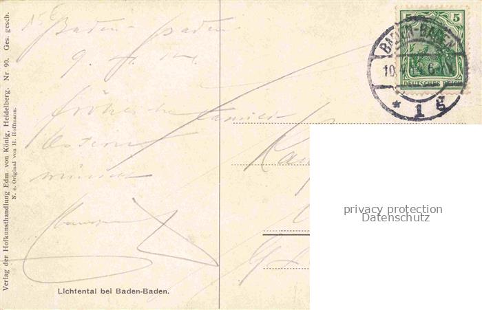 74005435 alte Postkarte Hoffmann Heinrich Kuenstlerkarte Sueddeutschland Alsace Lichtental bei Baden-Baden postalisch gelaufen Erhaltung siehe scans [IrynaD87] KatCode: 22240000001600