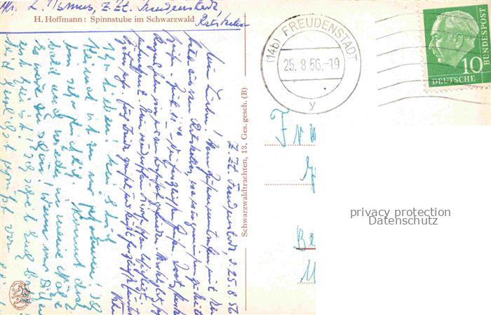 74006498 alte Postkarte Hoffmann Heinrich Kuenstlerkarte Sueddeutschland Alsace Spinnstube im Schwarzwald postalisch gelaufen Erhaltung siehe scans [IrynaD87] KatCode: 22240000001600