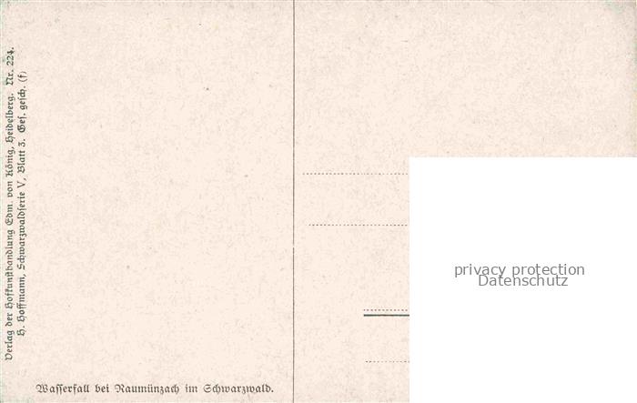 74005530 Hoffmann Heinrich Kuenstlerkarte Sueddeutschland Alsace Wasserfall bei Raumuenzach im Schwarzwald postalisch nicht gelaufen Erhaltung siehe scans [IrynaD87] KatCode: 22240000001600