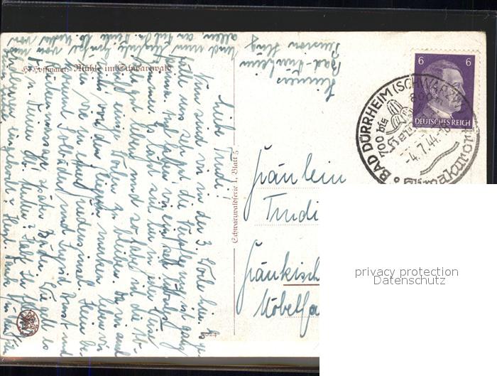 alte Postkarte Hoffmann Heinrich Muehle im Schwarzwald postalisch gelaufen Erhaltung siehe scans