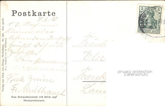 alte Postkarte Hoffmann Heinrich Schwalbennest Neckarsteinach postalisch gelaufen