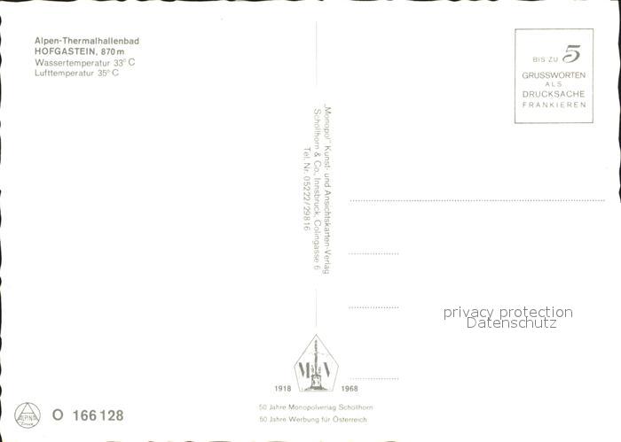 72245036 Hofgastein Alpen- Thermalhallenbad postalisch nicht gelaufen Erhaltung siehe scans KatCode: 11390322050402