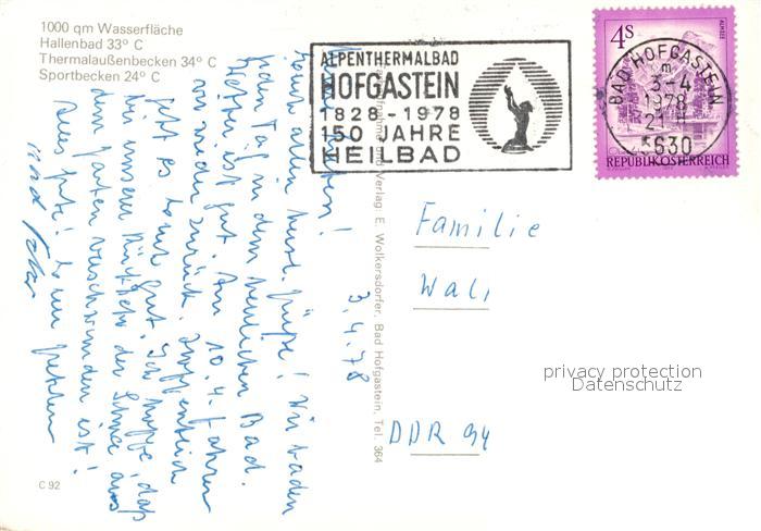 73517403 alte Postkarte Hofgastein Alpenthermal Hallenbad postalisch gelaufen Erhaltung siehe scans [KathaD81] KatCode: 11390322050402
