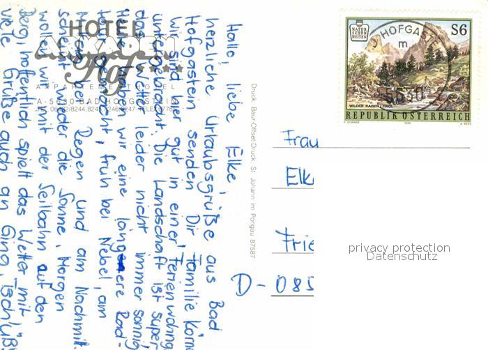 72917264 alte Postkarte Hofgastein Bad Hotel Arkaden Hof postalisch gelaufen Erhaltung siehe scans [KathaD81] KatCode: 11390322050402