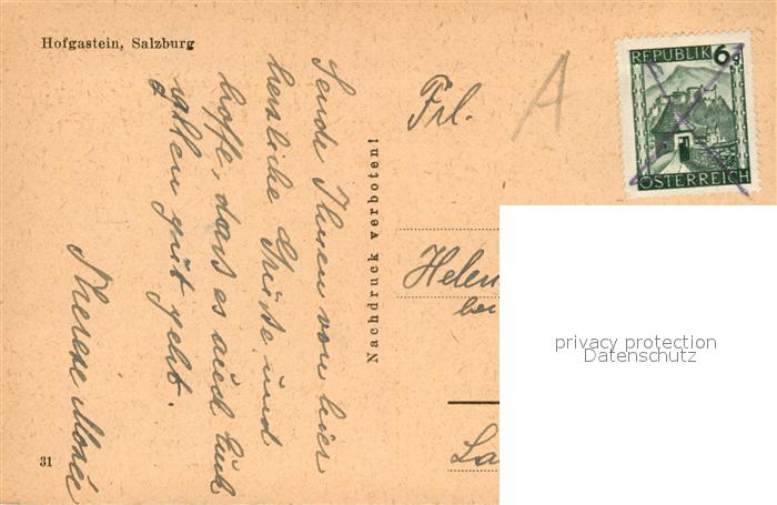 43095361 alte Postkarte Hofgastein Ortsmotiv postalisch gelaufen Erhaltung siehe scans [WerneD78] KatCode: 11390322050402