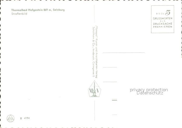 72437318 Hofgastein Thermalbad Strassenbild postalisch nicht gelaufen Erhaltung siehe scans KatCode: 11390322050402