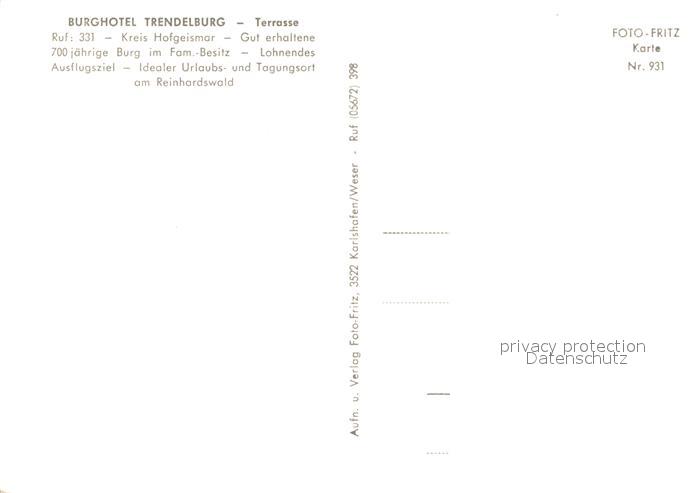 73100520 Hofgeismar Burghotel Trendelburg Terrasse Auto Halle postalisch nicht gelaufen Erhaltung siehe scans [KathaD81] KatCode: 11110006633013