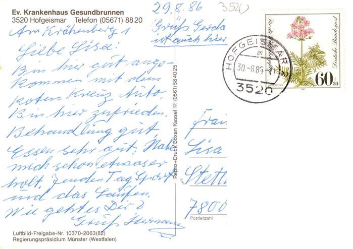 73935210 alte Postkarte Hofgeismar Ev Krankenhaus Gesundbrunnen Fliegeraufnahme postalisch gelaufen Erhaltung siehe scans [FriedD77] KatCode: 11110006633013