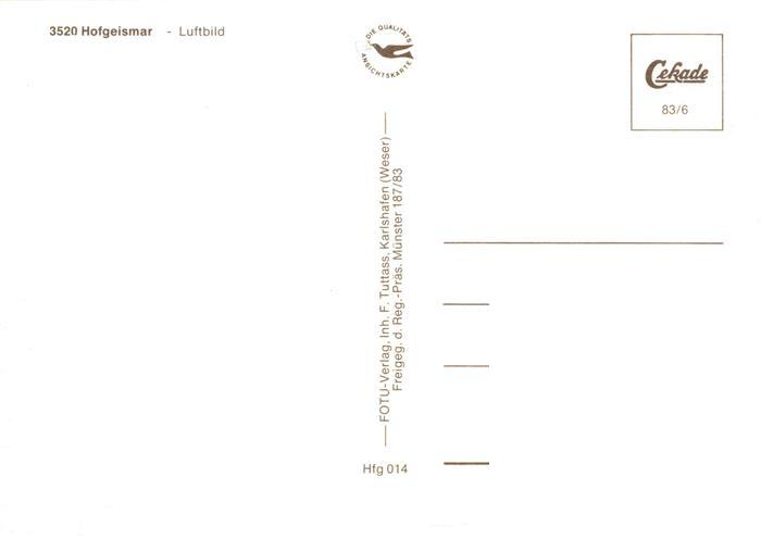 74015243 Hofgeismar Fliegeraufnahme postalisch nicht gelaufen Erhaltung siehe scans [WerneD78] KatCode: 11110006633013