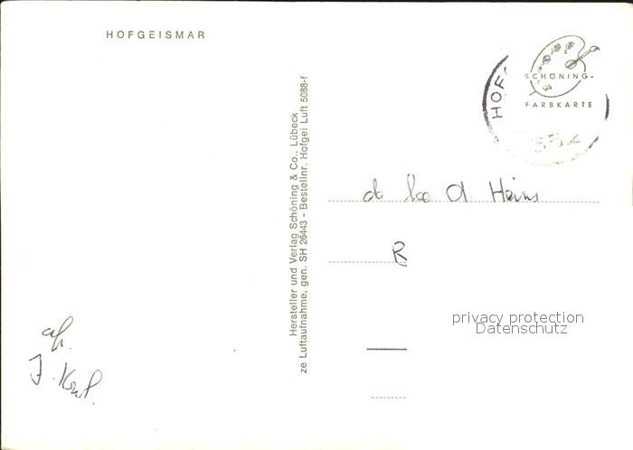 72597495 alte Postkarte Hofgeismar Fliegeraufnahme postalisch gelaufen Erhaltung siehe scans [LiesaD40] KatCode: 11110006633013