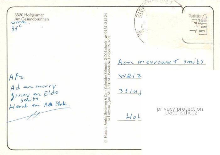 72785924 alte Postkarte Hofgeismar Fliegeraufnahme mit Gesundbrunnen postalisch gelaufen Erhaltung siehe scans [WerneD78] KatCode: 11110006633013