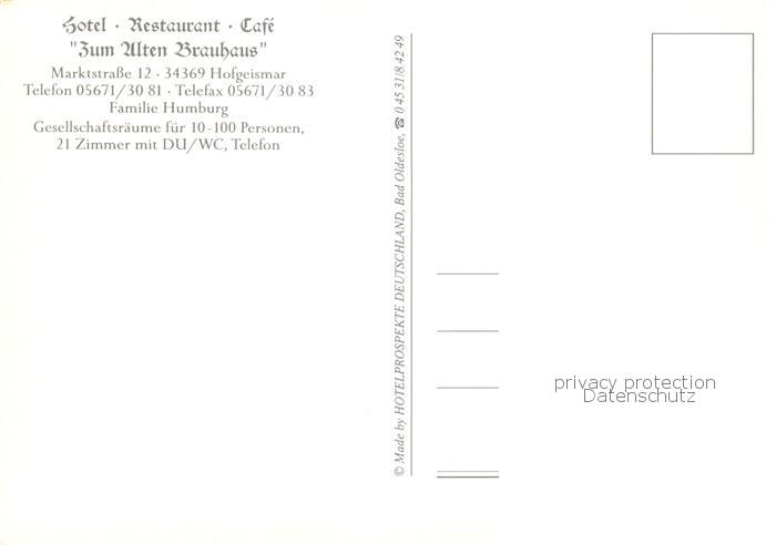73846098 Hofgeismar Hotel Restaurant Cafe Zum Alten Brauhaus postalisch nicht gelaufen Erhaltung siehe scans [WerneD78] KatCode: 11110006633013