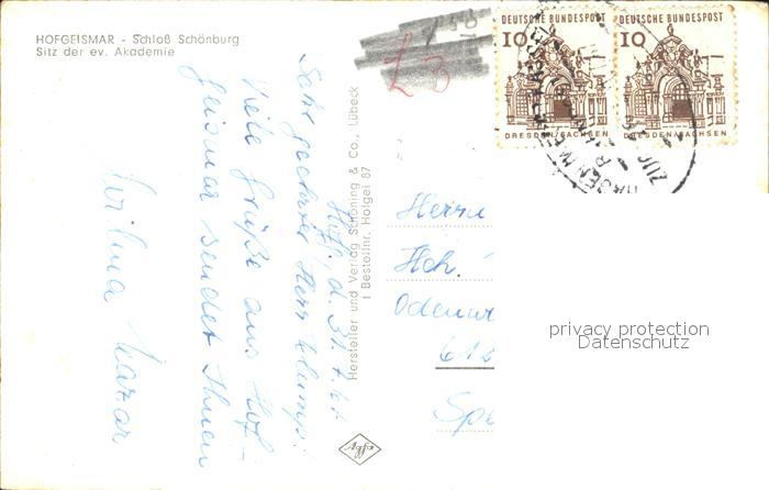 72433662 alte Postkarte Hofgeismar Schloss Schoenburg Schwanenteich postalisch gelaufen Bahnpost Erhaltung siehe scans KatCode: 11110006633013