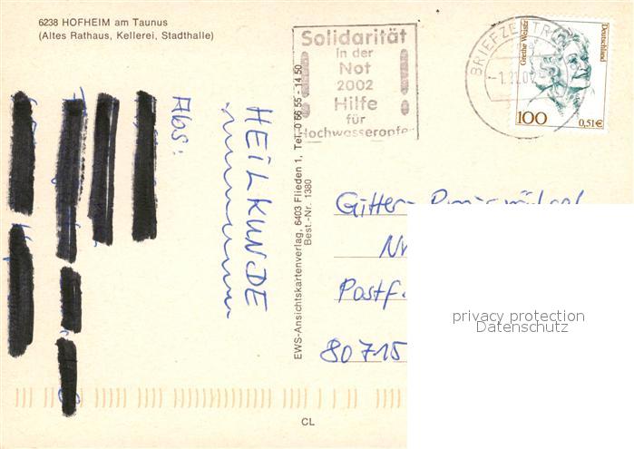 73228417 alte Postkarte Hofheim Taunus Altes Rathaus Kellerei Stadthalle postalisch gelaufen Erhaltung siehe scans [FriedD77] KatCode: 11110006436007