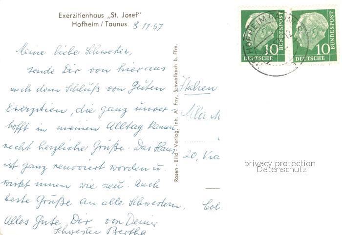 73251414 alte Postkarte Hofheim Taunus Fliegeraufnahme Exerzitienhaus Sankt Josef postalisch gelaufen Erhaltung siehe scans [KathaD81] KatCode: 11110006436007
