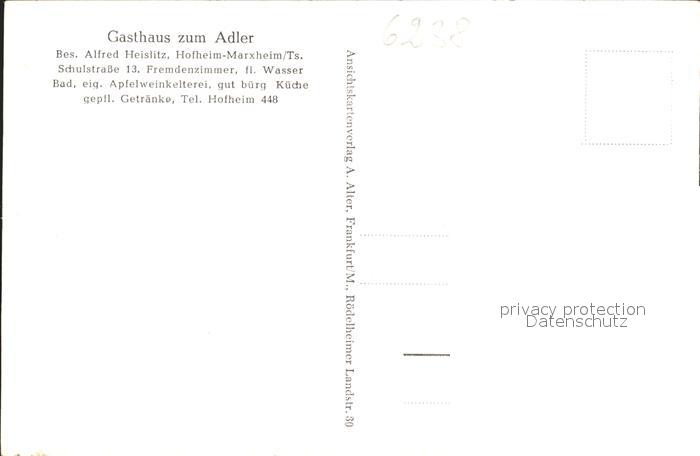 72095730 Hofheim Taunus Gasthaus zum Adler Marxheim postalisch nicht gelaufen Erhaltung siehe scans KatCode: 11110006436007
