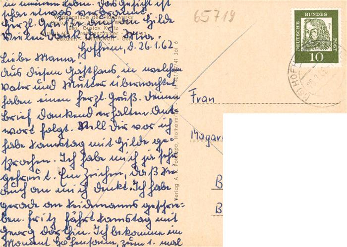 73870719 alte Postkarte Hofheim Taunus Historischer Gasthof Landsberg Gaststube postalisch gelaufen Erhaltung siehe scans [FriedD77] KatCode: 11110006436007