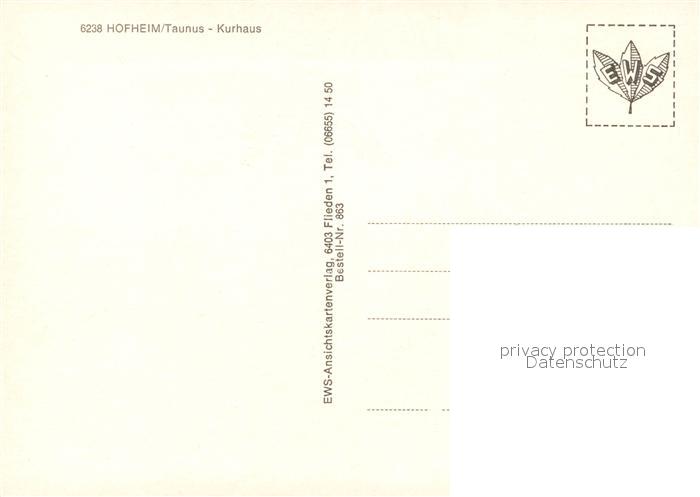 73129731 Hofheim Taunus Kurhaus postalisch nicht gelaufen Erhaltung siehe scans [NatalD47] KatCode: 11110006436007