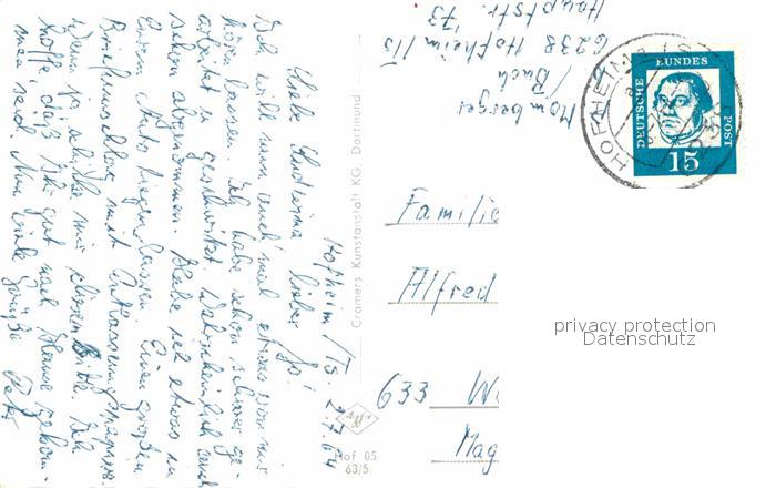 72749211 alte Postkarte Hofheim Taunus Rathaus Bergkapelle Meisterturm postalisch gelaufen Erhaltung siehe scans [AndreD76] KatCode: 11110006436007