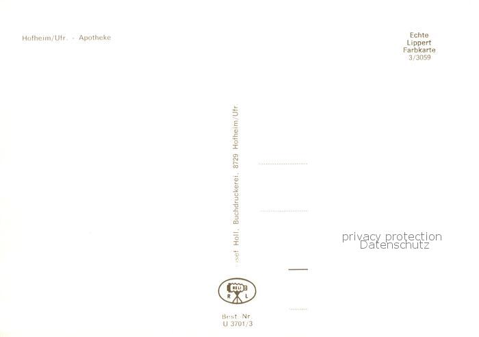 73873860 Hofheim Unterfranken Apotheke postalisch nicht gelaufen Erhaltung siehe scans [WerneD78] KatCode: 11110009674149