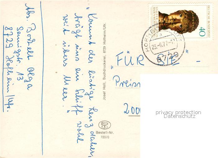 73670639 alte Postkarte Hofheim Unterfranken Bettenburg Fliegeraufnahme Staatl Realschule Marktplatz Kreuzkapelle postalisch gelaufen Erhaltung siehe scans [WerneD78] KatCode: 11110009674149