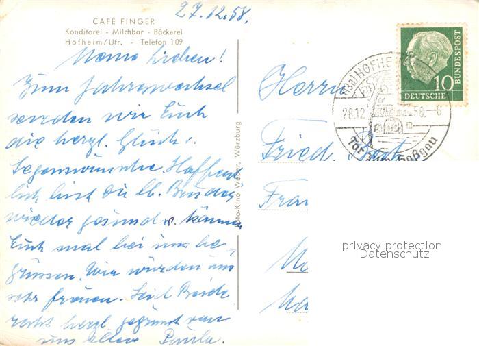 73793372 alte Postkarte Hofheim Unterfranken Cafe Finger Innenansichten postalisch gelaufen Erhaltung siehe scans [LiesaD40] KatCode: 11110009674149