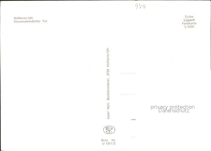72605508 Hofheim Unterfranken Gossmannsdorfer Tor postalisch nicht gelaufen Erhaltung siehe scans [FriedD77] KatCode: 11110009674149