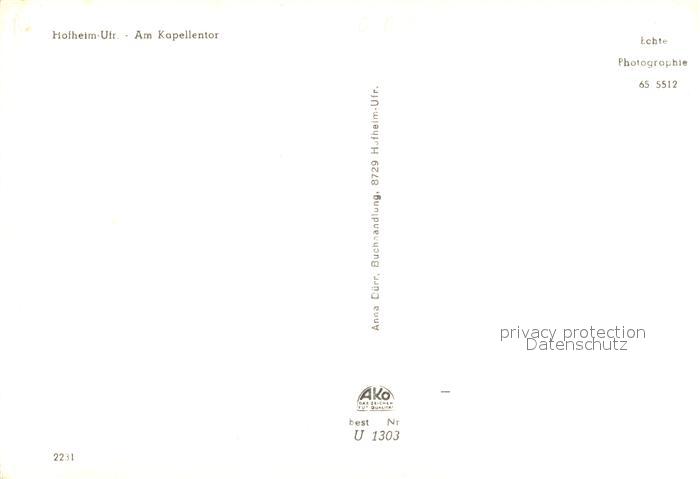 73238702 Hofheim Unterfranken Kapellentor postalisch nicht gelaufen Erhaltung siehe scans [NatalD47] KatCode: 11110009674149