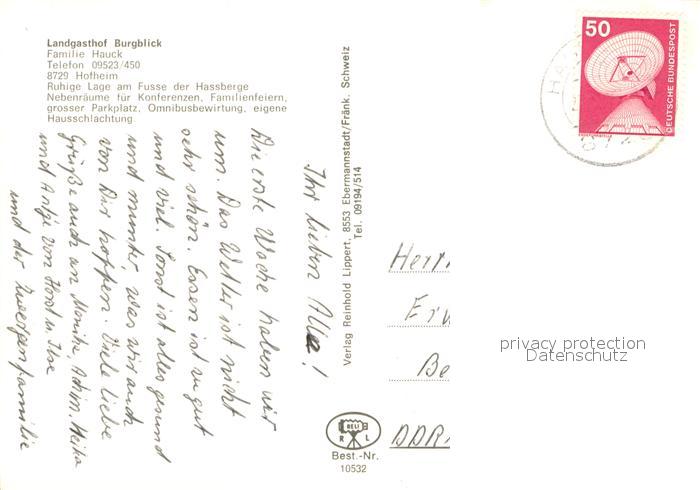 73651293 alte Postkarte Hofheim Unterfranken Landgasthof Burgblick Kinderspielplatz postalisch gelaufen Erhaltung siehe scans [WerneD78] KatCode: 11110009674149