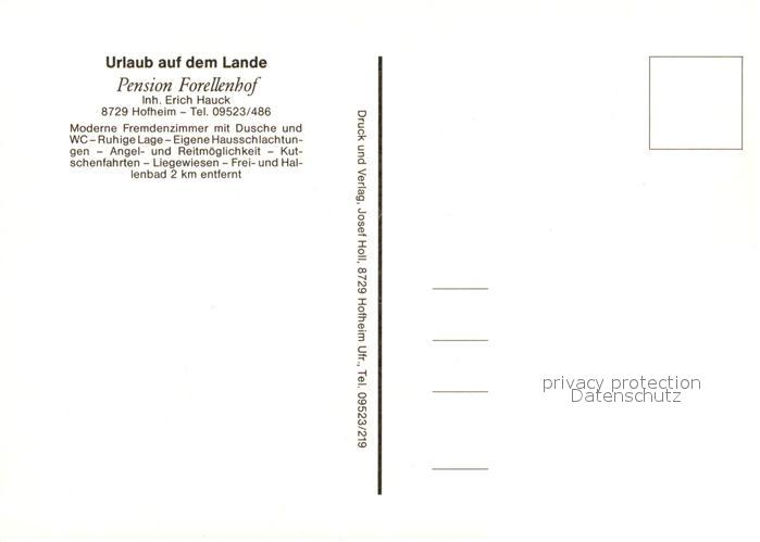 73081858 Hofheim Unterfranken Pension Forellenhof postalisch nicht gelaufen Erhaltung siehe scans [LiesaD40] KatCode: 11110009674149