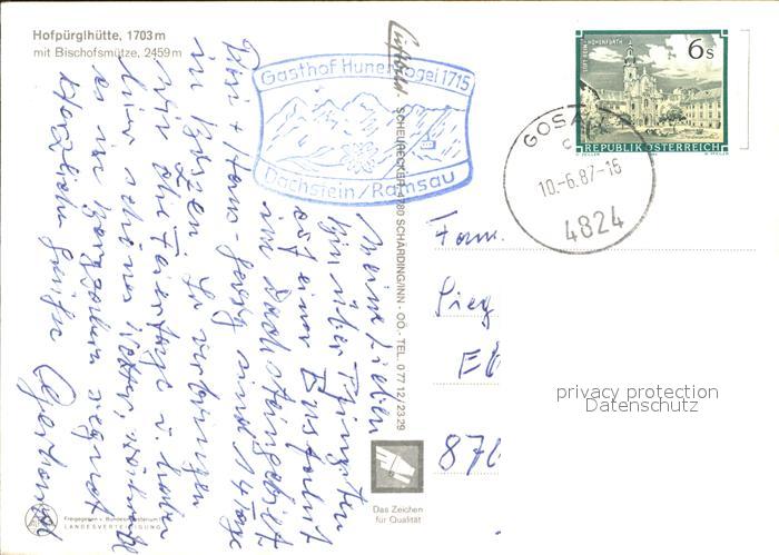 71909334 alte Postkarte Hofpuerglhuette Bischofsmuetze Linzer Steig Steiglpass postalisch gelaufen KatCode: 11390315040706
