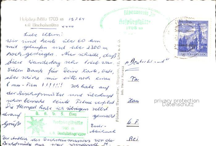 71951238 alte Postkarte Hofpuerglhuette mit Bischofsmuetze postalisch gelaufen KatCode: 11390315040706