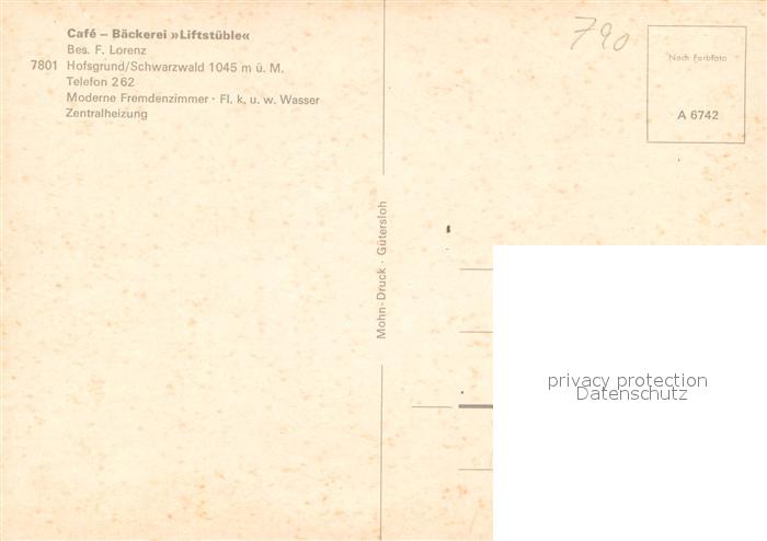 73641087 Hofsgrund Cafe Baeckerei Liftstueble postalisch nicht gelaufen Erhaltung siehe scans [WerneD78] KatCode: 11110008315084