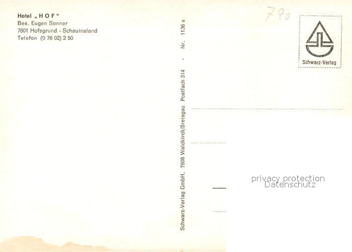 73641085 Hofsgrund Hotel Hof Schauinsland postalisch nicht gelaufen Erhaltung siehe scans [WerneD78] KatCode: 11110008315084