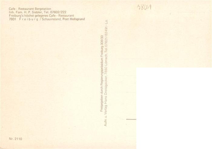 73932070 Hofsgrund Oberried Schauinsland Panorama Café Restaurant Bergstation Schauinsland Schwarzwald postalisch nicht gelaufen Fliegeraufnahme Erhaltung siehe scans [FriedD77] KatCode: 11110008315084