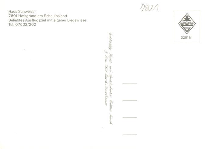 73932090 Hofsgrund Oberried Schauinsland Pension Haus Schweizer Gastraum postalisch nicht gelaufen Erhaltung siehe scans [FriedD77] KatCode: 11110008315084