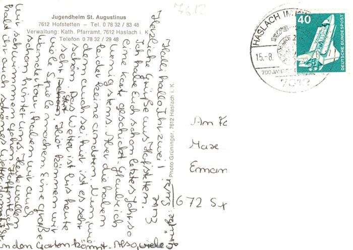 73871910 Hofstetten Haslach Kinzigtal Jugendheim St Augustinus postalisch gelaufen Erhaltung siehe scans [WerneD78] alte Postkarte Wern Katcode 11110008317046