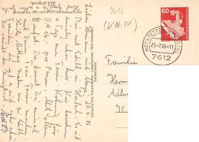 73934987 alte Postkarte Hofstetten Kinzigtal Fliegeraufnahme postalisch gelaufen Erhaltung siehe scans [WerneD78] KatCode: 11110008317046