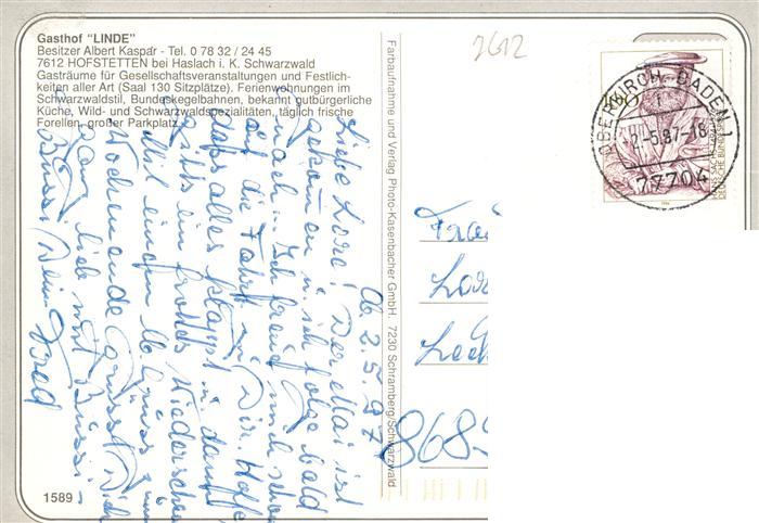 73934968 alte Postkarte Hofstetten Kinzigtal Panorama Muehle Freibad Gasthof Linde Kapelle postalisch gelaufen Erhaltung siehe scans [WerneD78] KatCode: 11110008317046