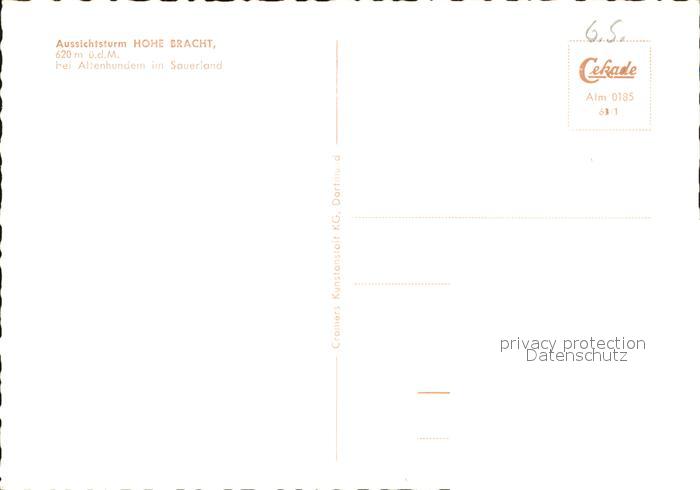 72504544 Hohe Bracht Aussichtsturm postalisch nicht gelaufen Erhaltung siehe scans KatCode: 11110005966020