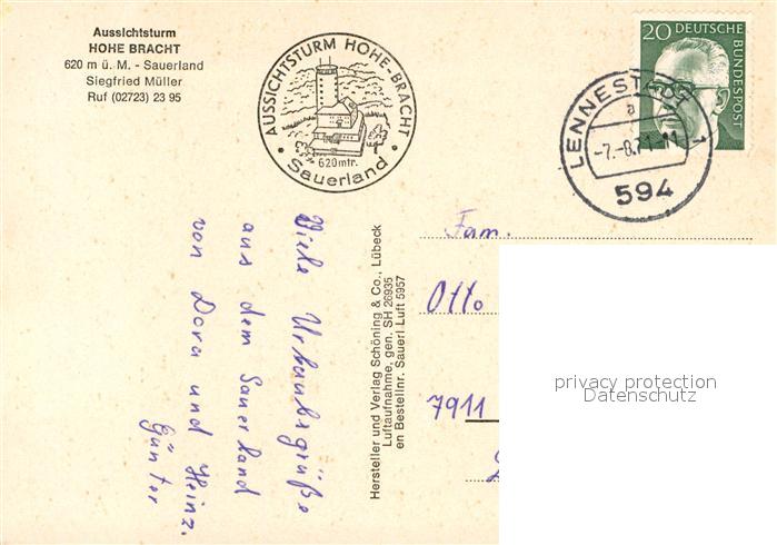 73017286 alte Postkarte Hohe Bracht Aussichtsturm Fliegeraufnahme postalisch gelaufen Erhaltung siehe scans [NatalD47] KatCode: 11110005966020