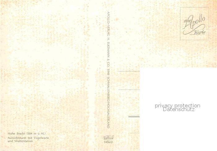 72896668 Hohe Bracht Aussichtsturm mit Vogelwarte und Wetterstation postalisch nicht gelaufen Erhaltung siehe scans [AndreD76] KatCode: 11110005966020