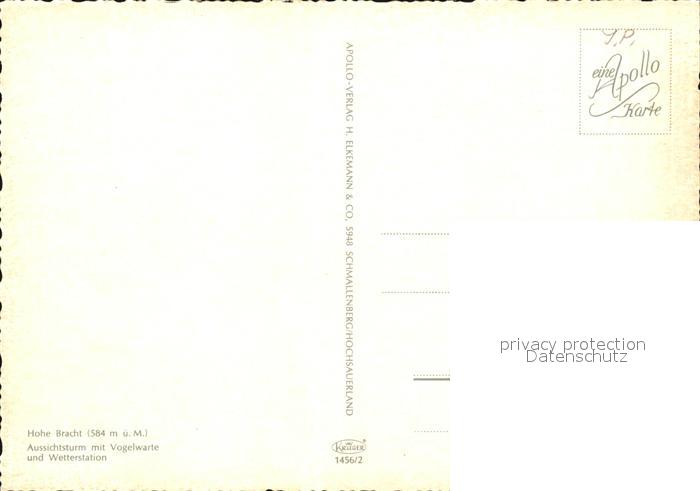 72504543 Hohe Bracht Aussichtsturm mit Vogelwarte Wetterstation postalisch nicht gelaufen Erhaltung siehe scans KatCode: 11110005966020