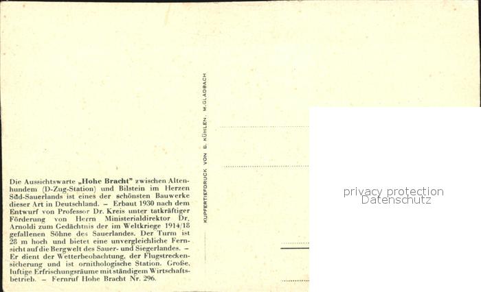 72470409 Hohe Bracht Fliegeraufnahme Aussichtsturm postalisch nicht gelaufen Erhaltung siehe scans KatCode: 11110005966020