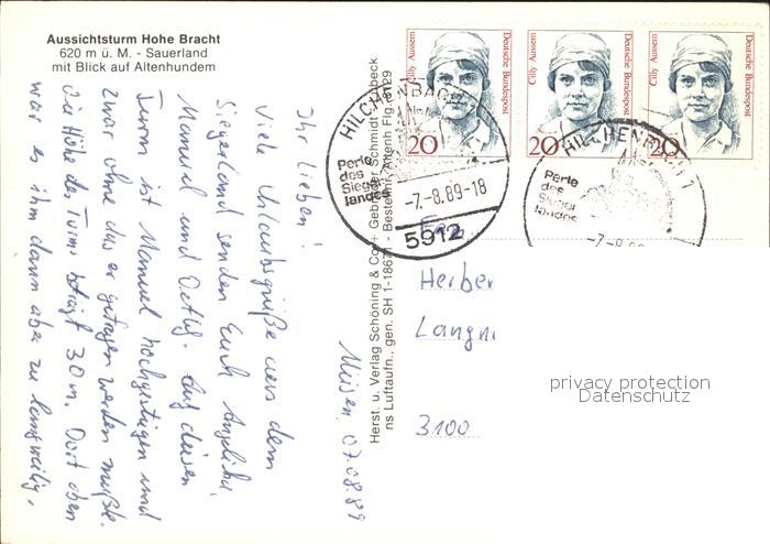 72202723 alte Postkarte Hohe Bracht Fliegeraufnahme Aussichtsturm postalisch gelaufen Erhaltung siehe scans KatCode: 11110005966020