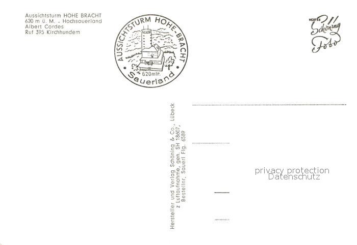 73041494 Hohe Bracht Fliegeraufnahme Aussichtsturm Bilstein postalisch nicht gelaufen Erhaltung siehe scans [NatalD47] KatCode: 11110005966020