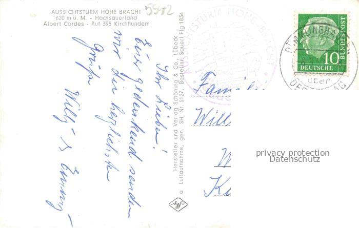 74100135 alte Postkarte Hohe Bracht Lennestadt NRW mit Blick auf Altenhundem postalisch gelaufen Erhaltung siehe scans [WerneD78] KatCode: 11110005966020